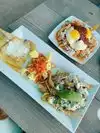 We walked here from our hotel to have lunch. Basically the only lunch items were various forms of chilaquiles, which are really just tortilla strips, that you could get topped with meat, grilled veggies, salsas. I had the grilled veg version with rojas sauce. The sauce had a good flavor, but the grilled veggies were little more than a few green pepper and onion pieces, and a few avocado slices, with a huge pile of the tortilla strips. I would have liked more veggies and much fewer tortilla strips and I left most of them on my plate. Would not eat here again.