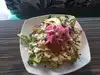 This was a post-volunteer lunch. I've been curious about this place, because when we pass by on weekends, it always seems to be busy. I didn't get a chance to go with my husband, but stopped in for lunch with some co-workers one mid-week day. It wasn't too busy when we got there, which was nice - because by the time we left, there was a line. We spent some time acquainting ourselves with their meals and menu items, before all deciding we were going to get different variations of their salad. You basically get a base, and can add on five toppings. Additional toppings cost more, of course, but five was plenty for me. I went with the pickled onions, corn, queso blanco, broccoli and mushrooms. I added chicken for an extra cost, and went with their house dressing. At checkout, I got their mango juice drink. We huddled on one of the tables in the dining room, and set to on our salads. I enjoyed mine, but was glad that I didn't drop a ton of money on it. It was very basic - a salad, after all - so I don't feel like I gave their food a fair shake. I would be interested in going back for their hot food, but I don't know that it's high on my list of restaurants to return to.