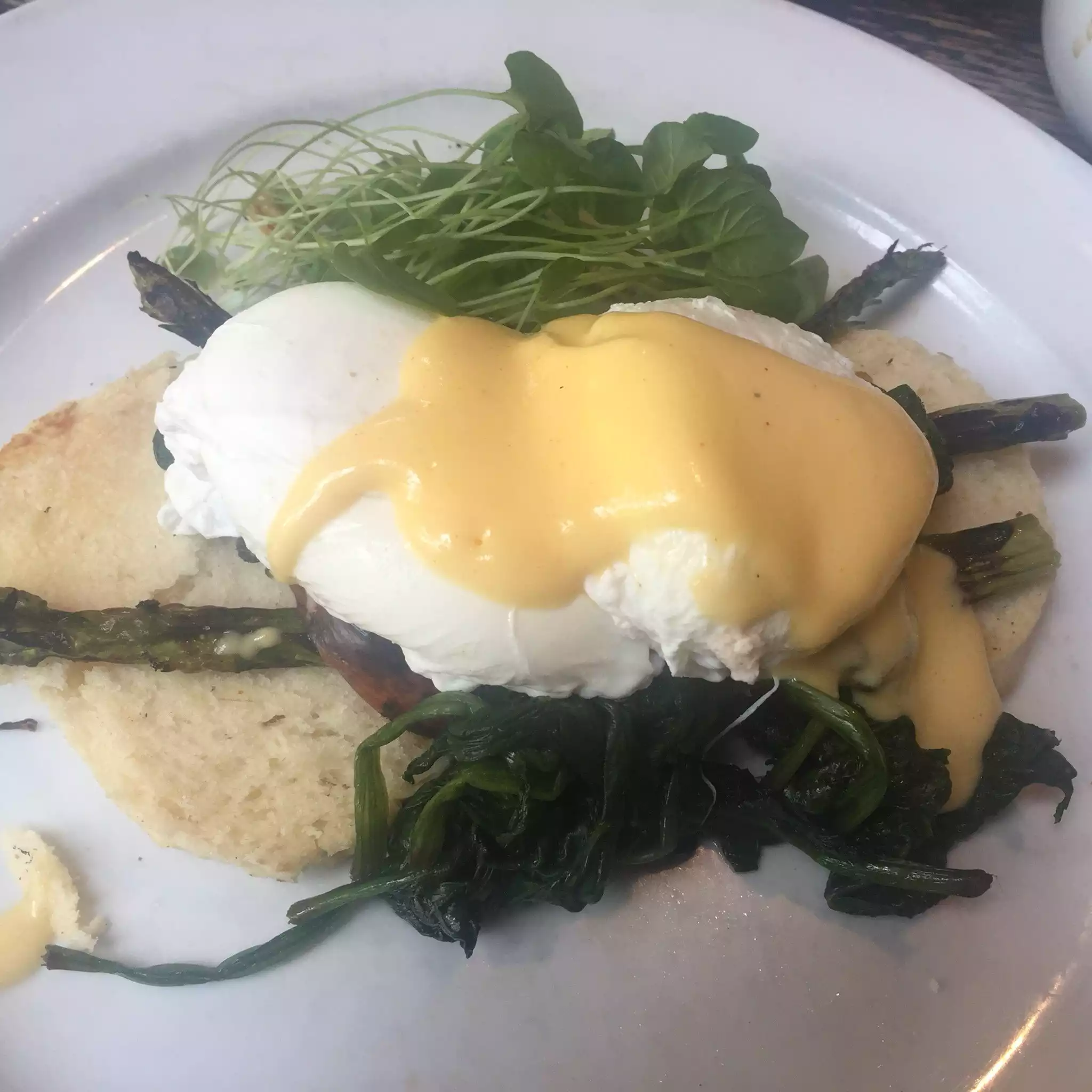 I ordered the Florentine eggs Benedict. The eggs were practically raw, the pieces of artichokes were inedible (the choke left in and what remained was inedible). The service was good.