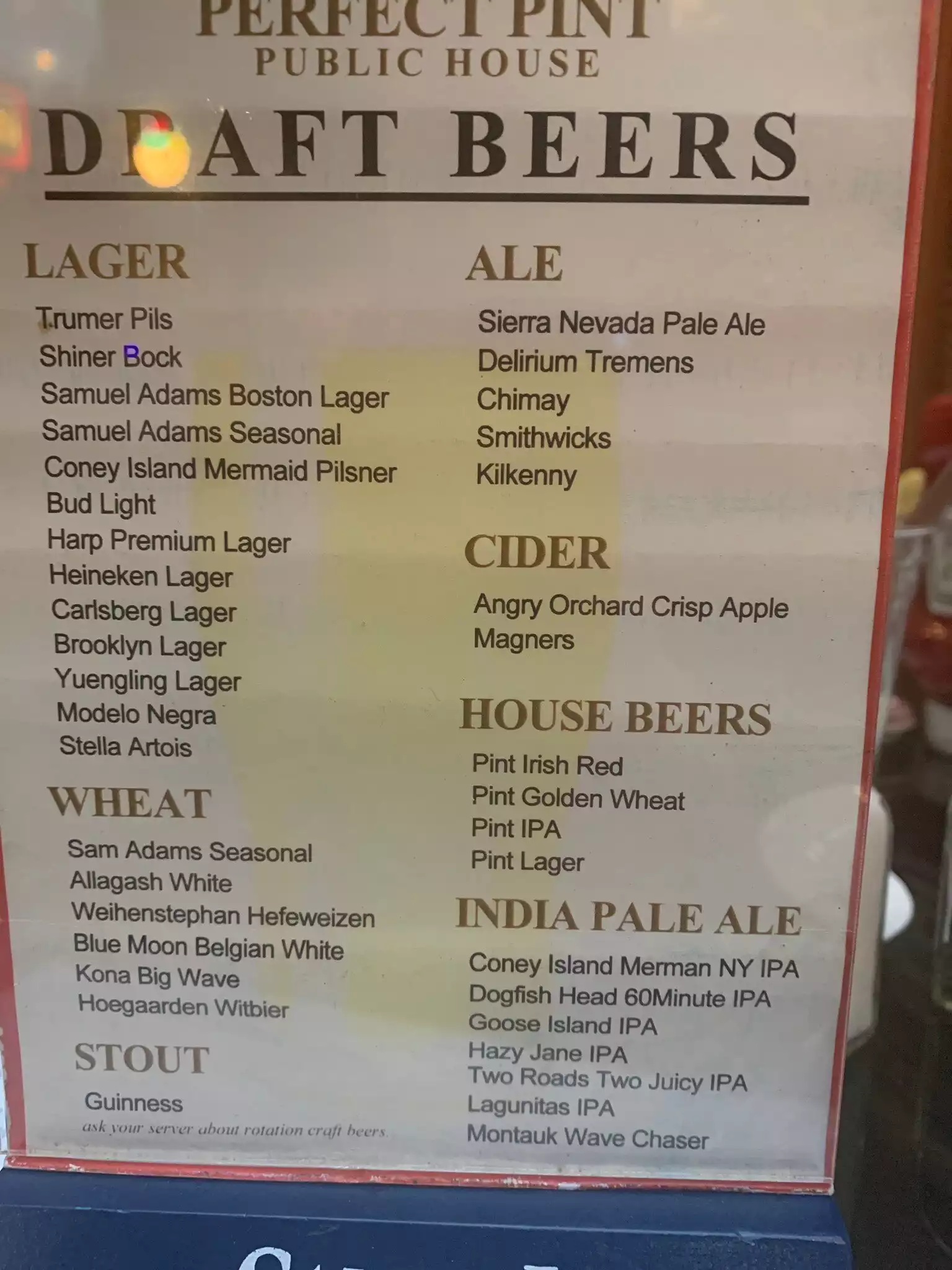 We where in NYC pub who is located to 47 street. There was very nice atmosphere and bartenders where very nice. We enjoyed that evening.