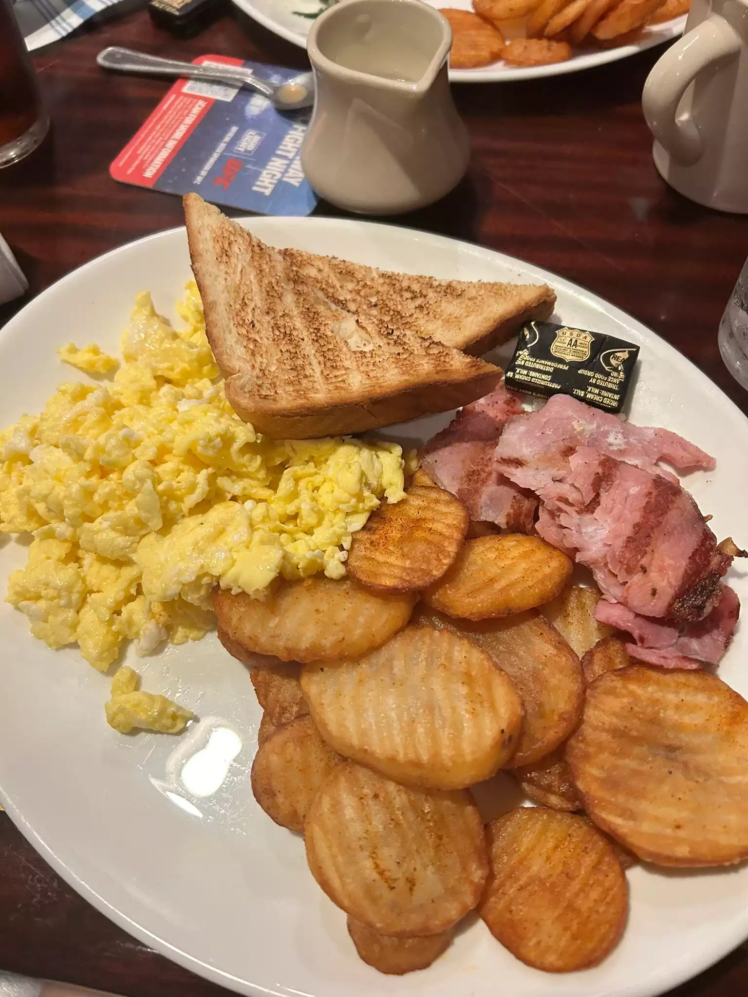 Awesome delicious food! Excellent Service. Wide selection. I had Irish eggs benedict. Brother had eggs toast potatoes, sister had yoghurt with fruit. waitress refilled coffee as often as you wish. Clean environment