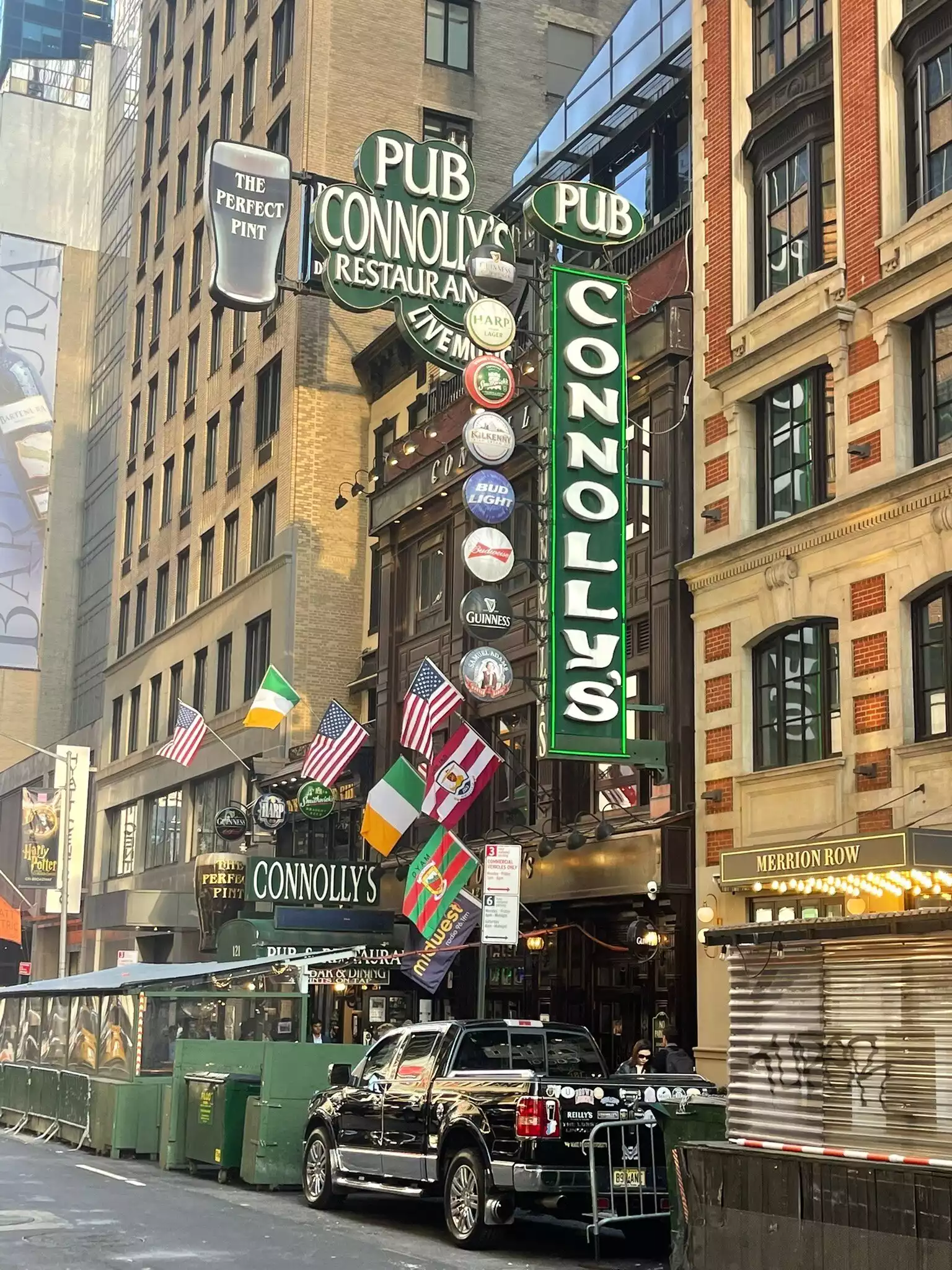 We discovered Connolly's after seeing a play. It's a perfect Irish pub. The bartender, who had been working there for 12 years, was from Ireland. He was so nice. We enjoyed a half and half: Guinness and Harp. We liked the drinks and atmosphere so much, we went back the next 2 nights. Fantstic atmosphere.