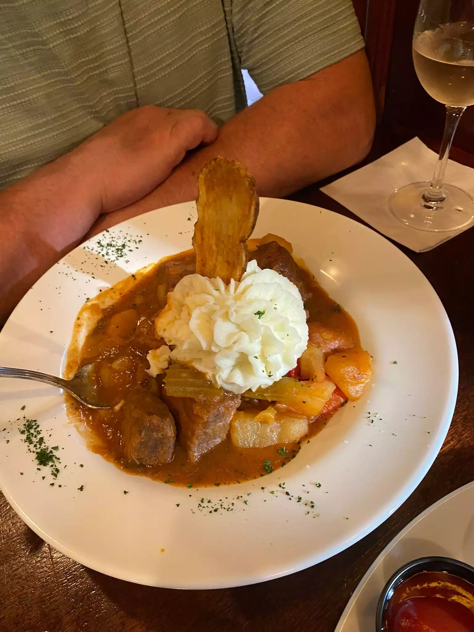 Quick dinner tonight for 4: 1 appetiser (about $12) 3 x $23 meals (chicken pie, Irish stew, shepherds pie) 4 beers, 3 wines, 1 cocktail - $US248 (plus the obligatory tip) Hubby asked me to check before paying (I checked what was ON the bill) but not the total 😡