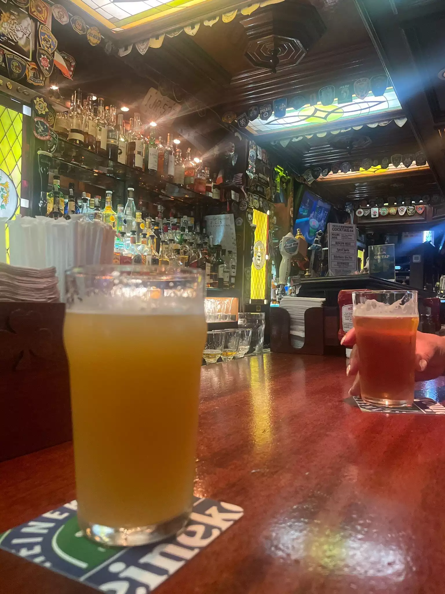 Visited this place on the 1st day of our weekend trip and absolutely loved it. Great Irish/American bar feel to it. Numerous TVs to watch sports on. Bar had a great look with all the badges of law enforcement. Very good selection of beers and spirits. Staff very attentive. A must if a British traveller wanting a similar British pub feel.