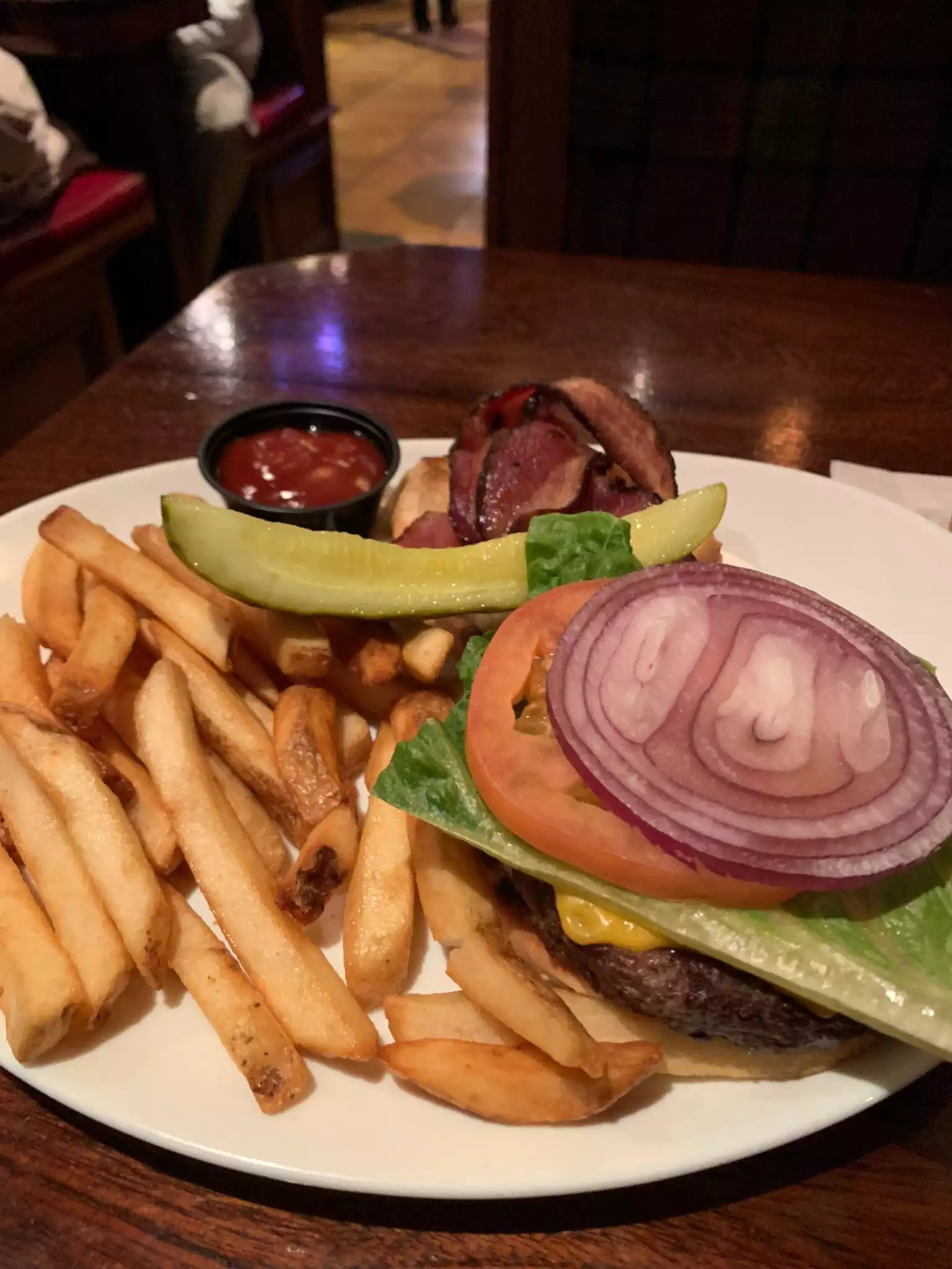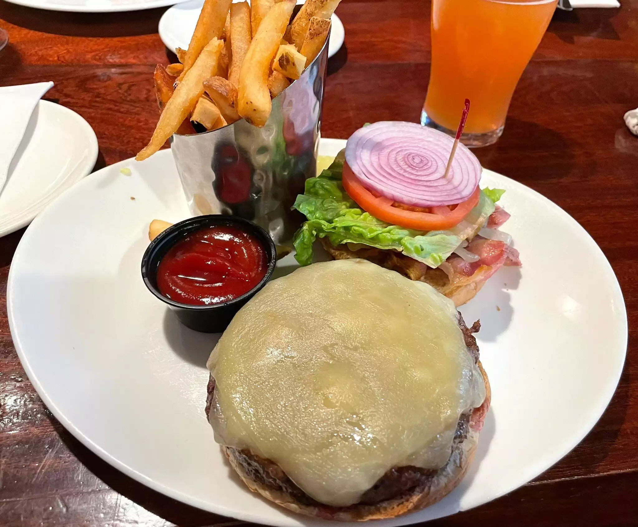 It’s a pub, so the drinks are good. It has a proper (nice) old school, traditional Irish Pub ambiance. The food were average. The Fish and Chips dish was decent, but the burger (pictured) was forgettable. I ordered medium rare and it came medium, understandably flavor was dropped by half. Service was fine and efficient. Prices were reasonable. This may not be the place you have to put on your bucket list, but if you happen to be in Times Square and want a place to hangout for food and drinks, this can be an option.