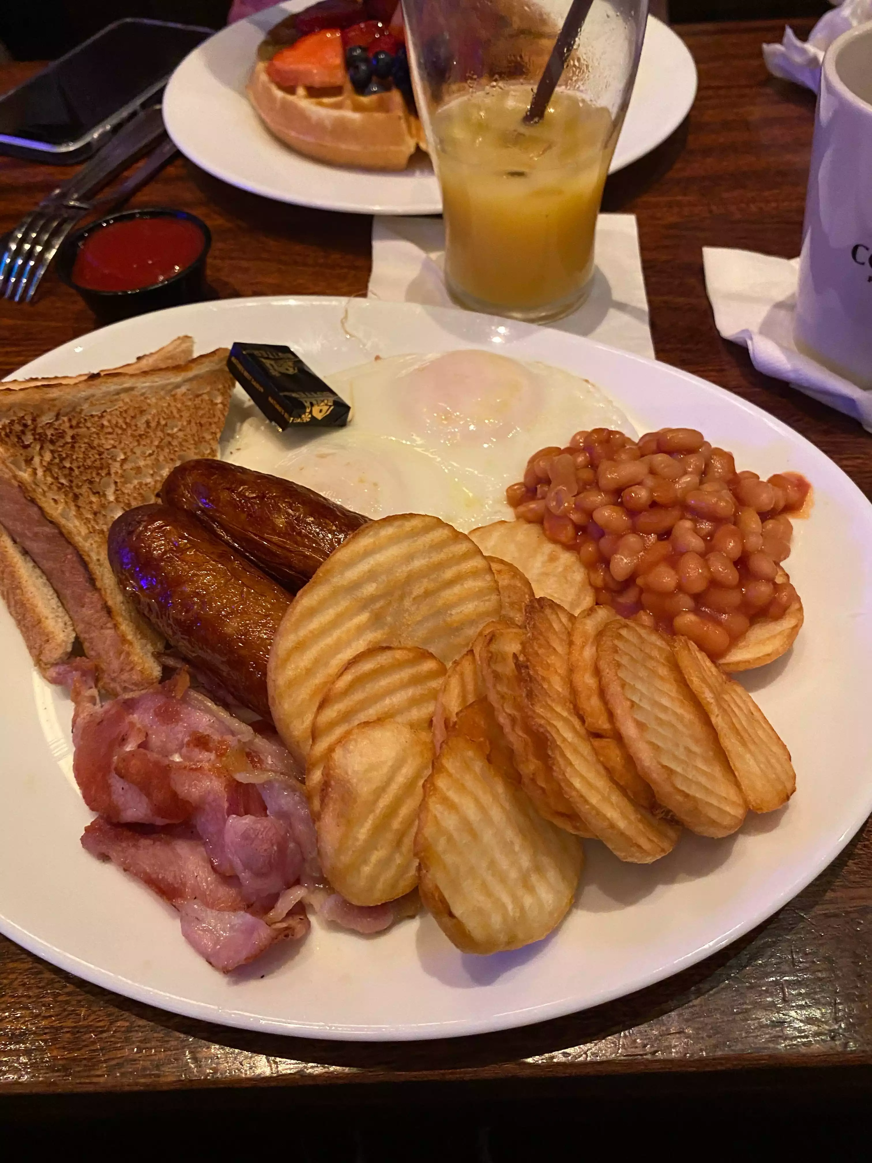 Decent breakfast, great sausage and bacon. Quite a pricey bar really don’t get why unsure if it’s different upstairs to downstairs. Spent a few days in and out of here would recommend full Irish coupled with a Guinness.
