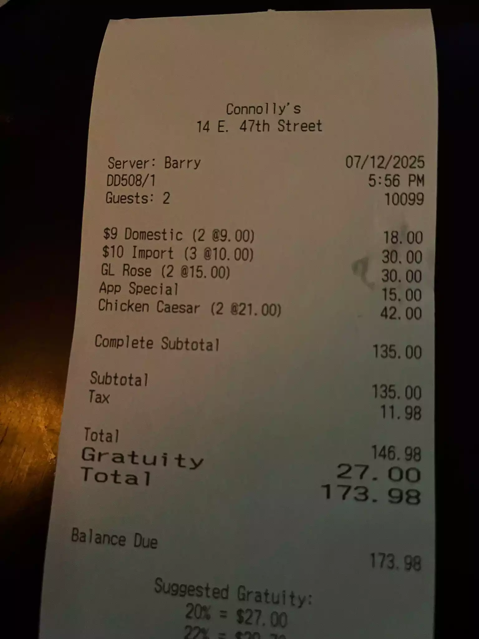 My cousin and I ate at Connolly’s for lunch in July 2022. Food: pleasantly surprised. I ordered a Salmon dish, and he ordered a shrimp salad (see pics). The food was delicious and above my expecting for a pub in Times Square. Service: courteous and professional. Decor: average pub decor. Cost: fair price for Times Square, NYC.