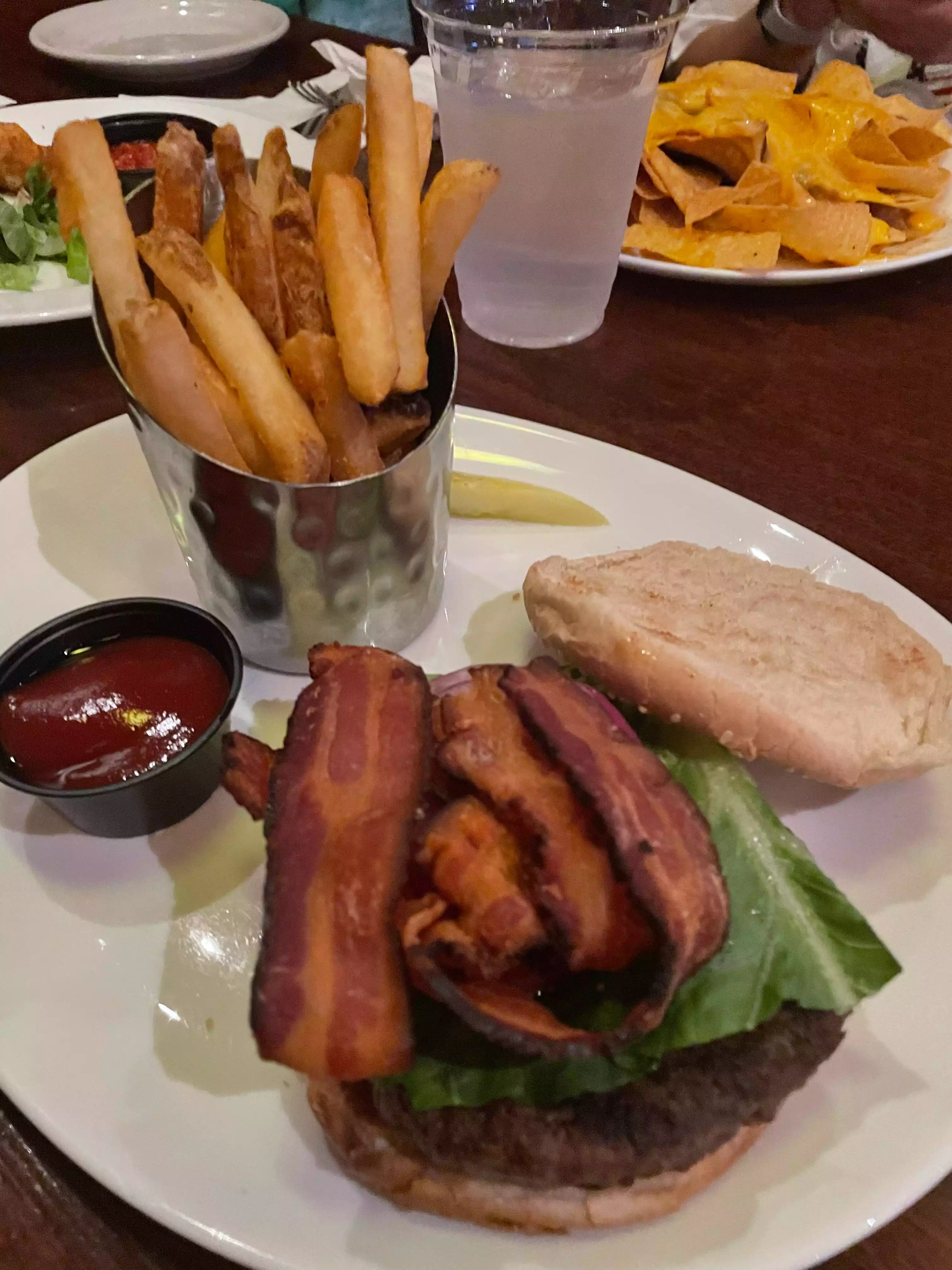 We picked this location because it was close to the theater we were attending. Fish and chips were excellent. Burger was average. Rude and unfriendly staff. There are tons of other options.