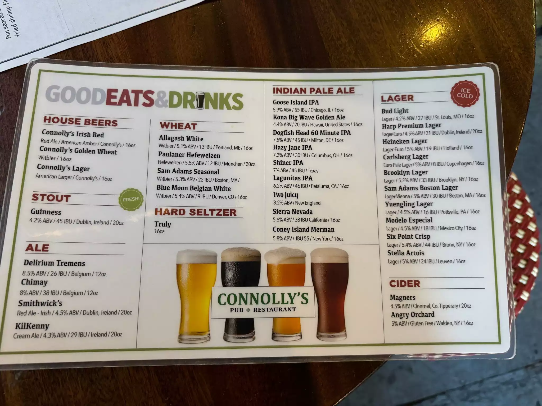 Arrived in New York for a week long family holiday/ wife’s birthday celebration staying just off Times Square. Probably visited upwards of a dozen Irish bars before discovering Connolly’s serving the ‘ Holy Grail ‘ of beers - Kilkenny . The pub/restaurant itself is your usual authentic dark wood furniture which always seems to soak up the light making it dim but warm and welcoming at the same time . We had drinks - I of course had Kilkenny and thanked my lucky Irish stars that I’d found an establishment serving my all time favourite beer. The guy working the bar was friendly and made us welcome and we really enjoyed our time in there. We didn’t eat there but all the food coming out of the kitchen looked delicious, good portion size and looking at the menu reasonably priced. We will definitely be going back to eat and drink before returning home and I’ll write a second review but initial impressions are well worth a visit and you won’t be disappointed.