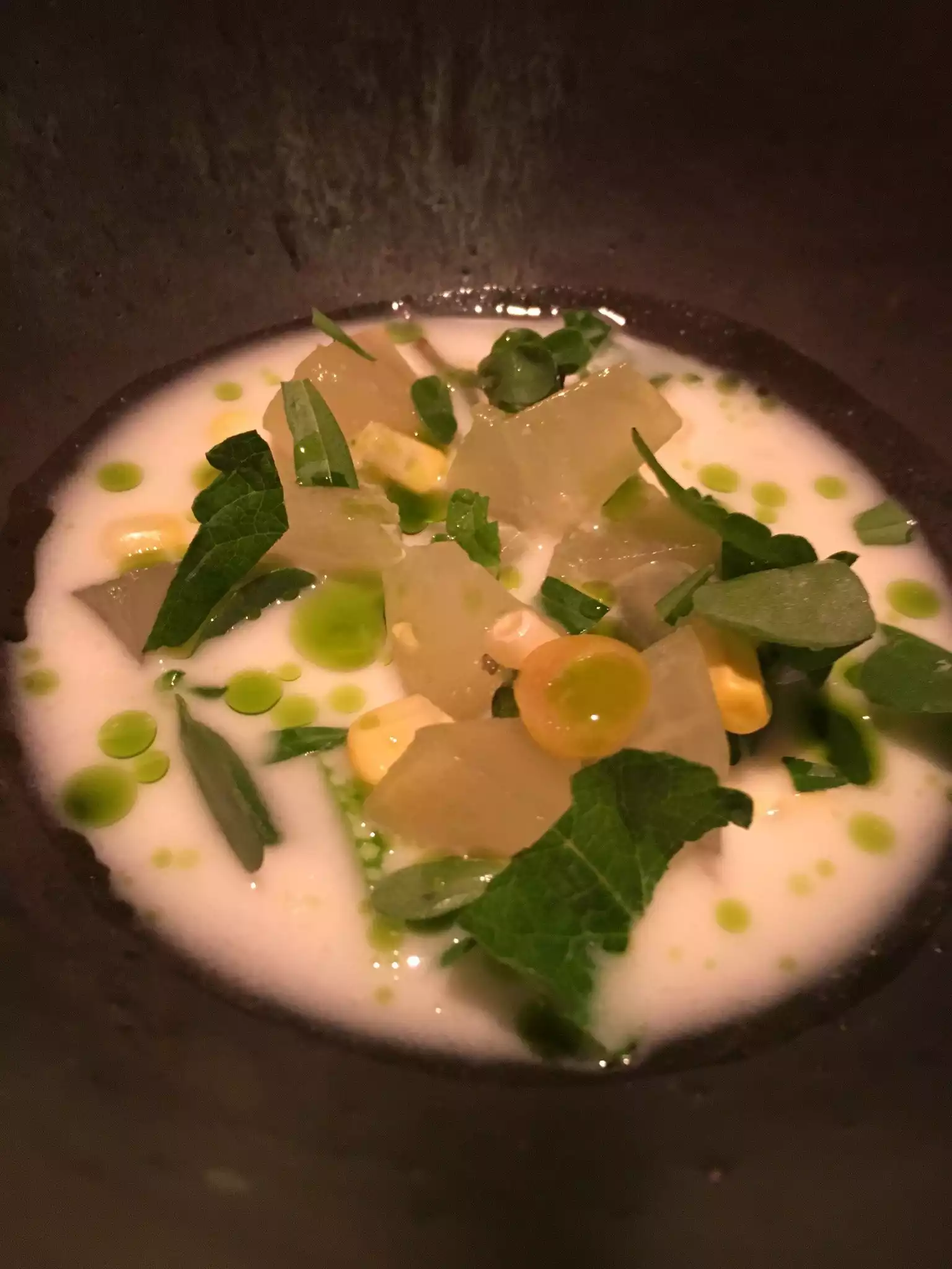 A 7 stories fix menu with different combination, where ingredients meet in an unconventional way. The row scallops with algae juice was surprising. An amazing dinner with a lot of surprise, super fresh seasonal ingredients and an impeccable service!