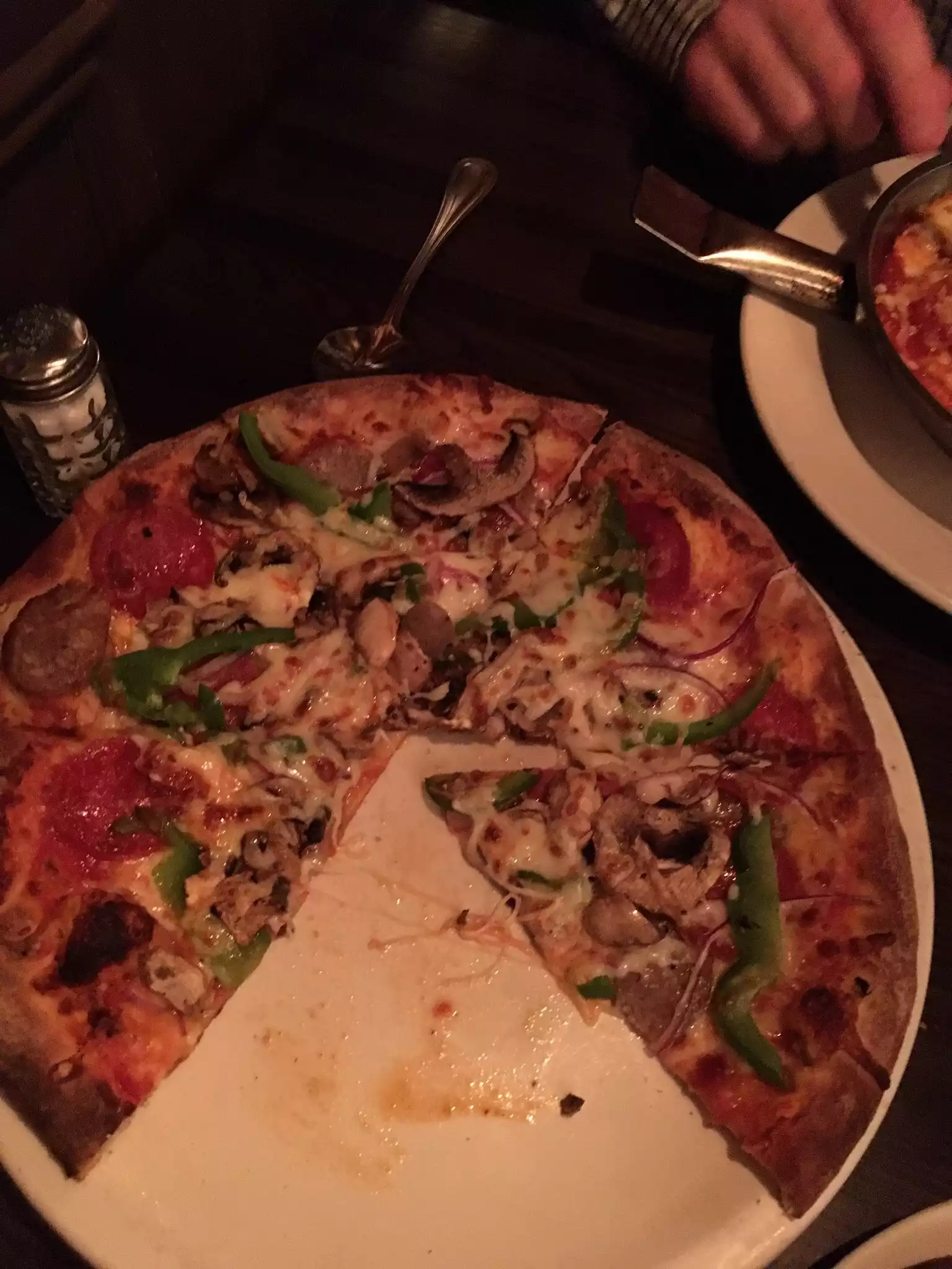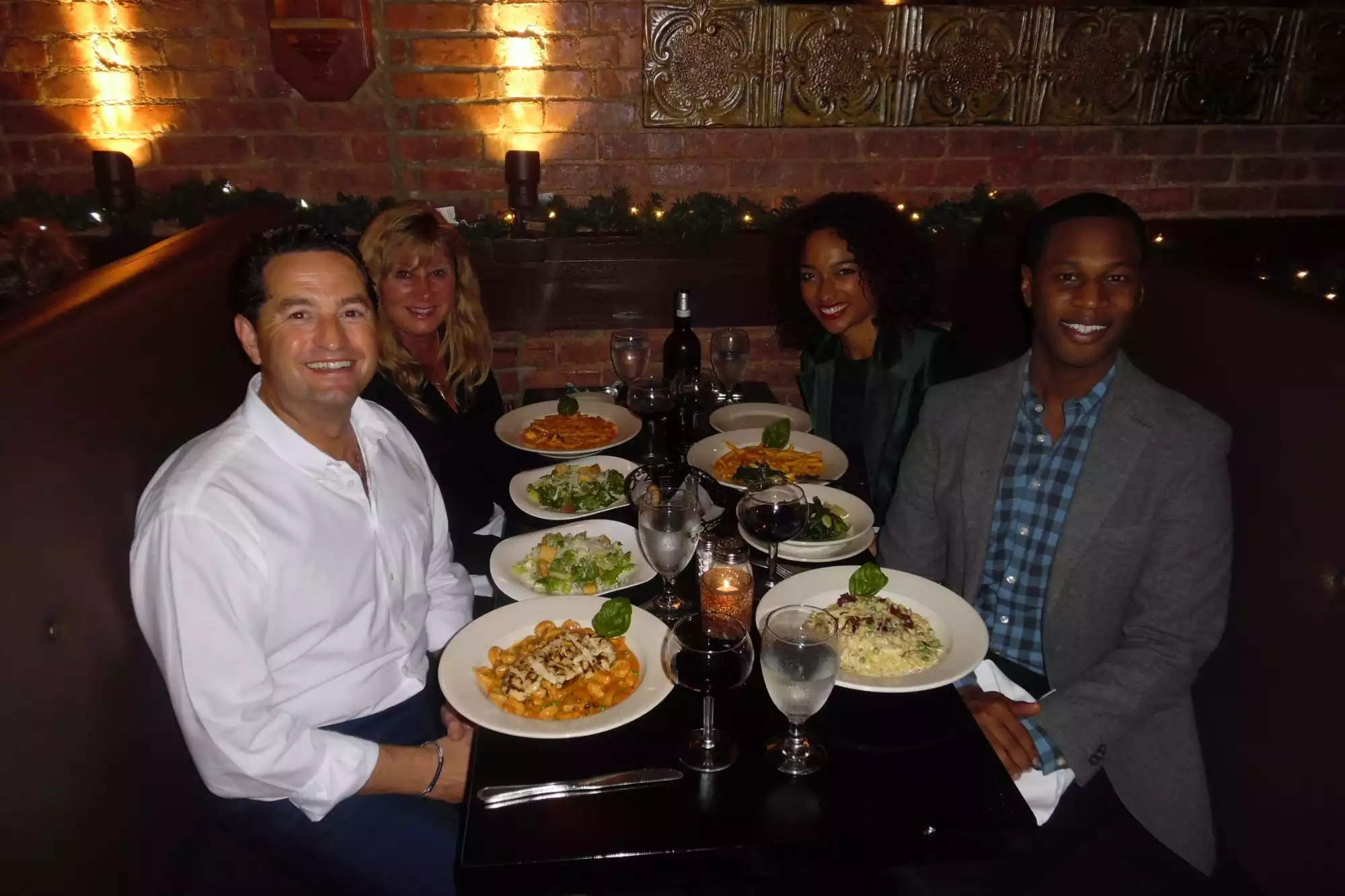 short version: great atmosphere, delicious food I came here with a big group of friends and we sat a a great circle booth which made it so easy to talk to the full group versus having a long rectangle table where you end up having small groups of people talking to each other. The food was delicious - I got the fettuccine alfredo. Atmosphere was great and the restaurant was much bigger on the inside than looked like from the outside.