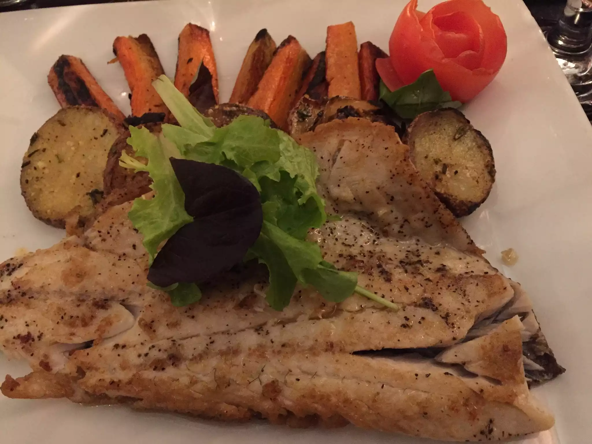 We really enjoyed our dinner here because of the comfortable booth seating, relaxed service, and excellent food. I had the fresh fish of the day which was perfectly seasoned and combined with delicious carrots and tasty potatoes. The fettuccini bolognese was also excellent.