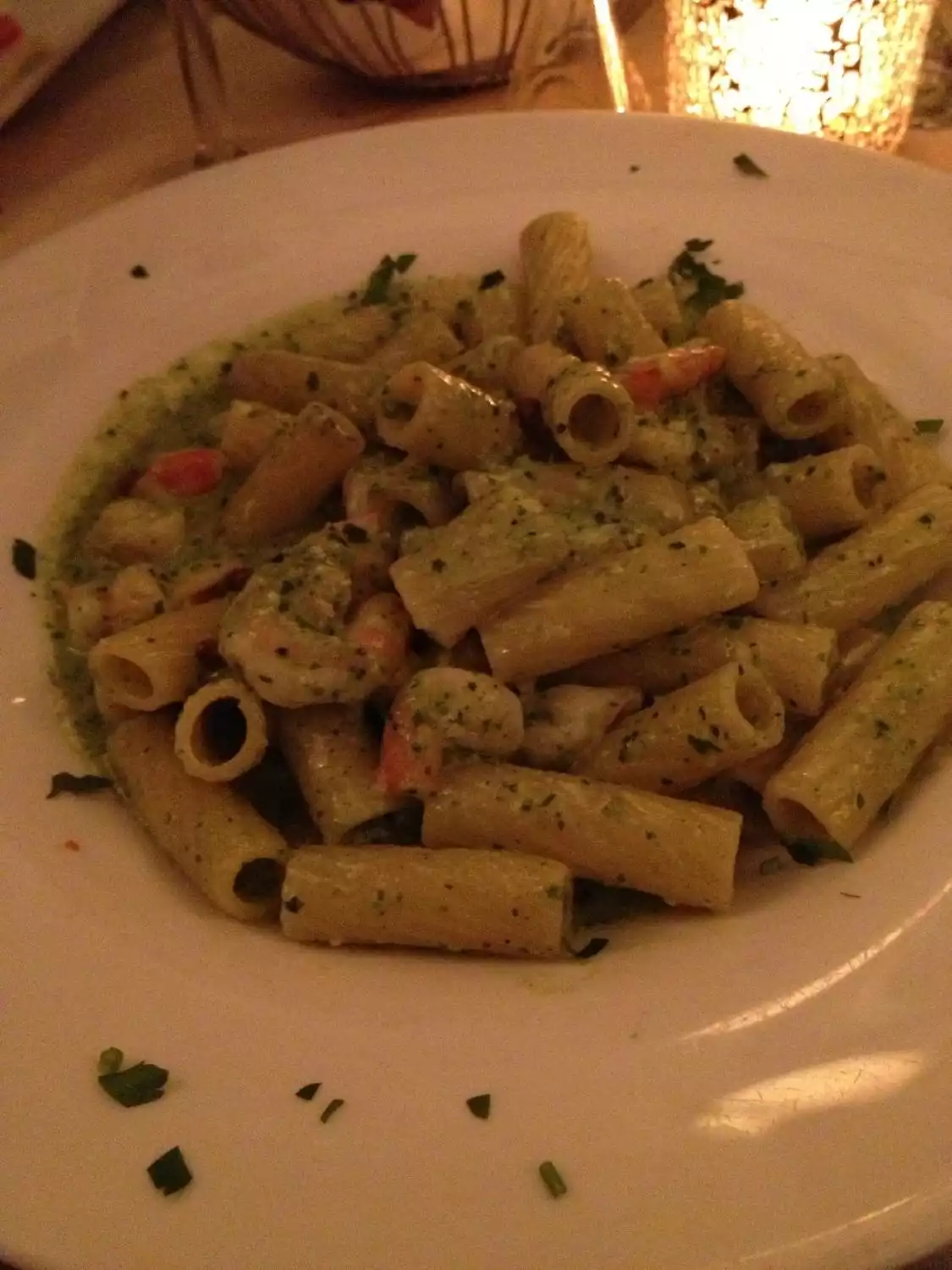 The stuffed mushrooms were a real treat ! My entree was the Rigatoni Pesto w shrimp...Best pesto sauce I have ever tasted !