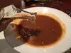Originally established in 1933 as a bar Coq d'Or (French for "golden cockerel"), after Prohibition was repealed in the US, this restaurant is located on the first floor of The Drake -- a historic hotel on E Walton St of the Gold Coast neighborhood in Chicago. Thanks to the dim-lighted, relaxing bar ambiance, cozy seating areas, and rich wood-and-leather, classic interior decor, the restaurant looks very warm and inviting. As for me, I just walked in The Drake, in search for a restaurant to have a nice lunch -- and I was cordially directed to Coq d'Or, where I was given a polite welcome and offer to take a seat, where I chose to. I sat at the table in front of the historic mural on the wall, and was immediately given the menu, that showed a large variety of meals. A nice lady seating at the opposite table, amiably suggested -- upon my request -- that if I would like something really authentic and not too heavy for lunch, I might enjoy Bookbinder's Red Snapper Soup, that is served with a crystal decanter of sherry. The same suggestion came from a very friendly server Elvis. Intrigued by the name of the soup and the way it is served, I decided to order it. A generous portion of hot Bookbinder's Soup was served very timely and turned out excellent! It is a tomato-and-roux-based soup with red snapper and sherry, the latter can be added to the soup when it is served, thus giving that extra, subtle bite to the taste of the meal: delicious. There's a lot of printed and online info on the unique recipe of the soup, that was originally developed by Samuel Bookbinder -- and immigrant from the Netherlands, who opened his restaurant in 1893 in Philadelphia, Pennsylvania. Later, the soup started to be offered in many other restaurants in the US, including Coq d'Or -- where it was introduced in 1952. The service at Coq d'Or was very attentive and very friendly -- both by Elvis and by Vincente (I think, that was the name of another amiable server). Excellent, enjoyable lunch, wonderful memories of the tasty soup, the cozy restaurant, the amiable lady, the friendly servers and the historic Drake Hotel. Thank you all very much!
