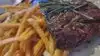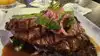 Needed to escape the noisy bar area and expense types so were seated in an ample booth. Enjoyed a lovely New York Strip with masses of fries. My wife enjoyed her Colorado Lamb T Bone steak