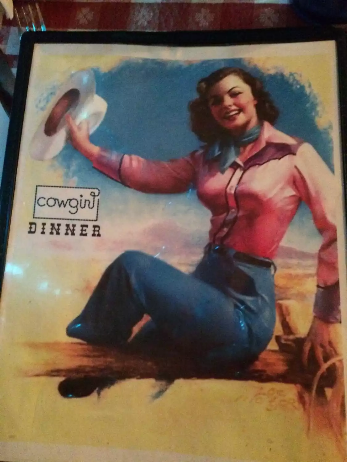 Cowgirl is a great restaurant with an awesome theme of the western cowgirls and cowboys. The food is great and the type of food is American. The service is awesome and the food isn't to pricey.