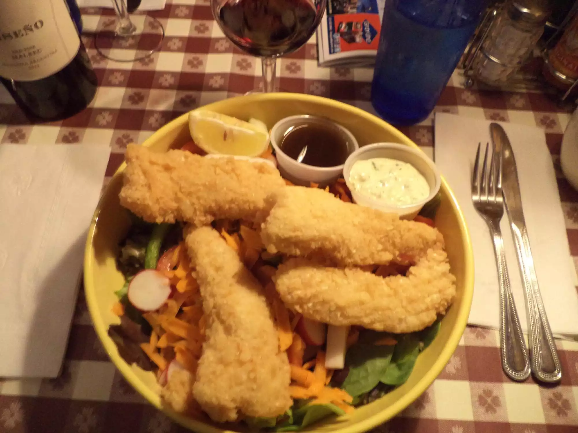 Stopped by here at lunchtime, the catfish salad was delicious. Good atmosphere with a mixed crowd. We were a little embarrassed to be told our tip of just over 10% was not enough. Apologies English people sometimes forget! :-)