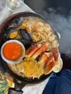 Solo lunch. I tried the killer combo with 1/2 crab shrimp and mussels. Served with ceremony and pouring of white wine over the crackling dish at the table. The butter sauce and concentrated crab juice sauce are absolutely delicious. A treat that I highly recommend. Very well served. Seated at an elm table by the window even though I was alone.