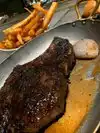 Would rate overall as a 3.5 experience. As an anniversary dinner while my wife and I were in Las Vegas (stayed in the Signature at MGM), I had higher expectations than the experience delivered. First off on the positives - beautiful restaurant and ambiance as we were seated in alcove booth. Wonderful drinks as my wife and I both got one specialty cocktail (different ones). Also very positive, my wife LOVED her French onion soup and enjoyed her scallops. The bread service was also tasty. Now on to the okay or negative reactions - I ordered the 18oz ribeye medium-rare and while not the wagyu version, I still expected a much more tender piece of meat than delivered. Also, it was more of a medium than medium rare but I didn’t want to wait on another cooked while my wife ate her meal. It was flavorful but just not as tender as I expected (since I have had many a more tender ribeye at mid budget restaurant like Texas Roadhouse). The baked potato ($26) was tasty and enjoyed the large chunks of bacon on top. I specified during the reservation online that it was an anniversary but not mention from the server so more than likely it was not communicated on our ticket since he seemed to be a very professional server. Overall, not bad but for a $300 meal, I wasn’t wowed and would not come back as their many other upscale restaurants here in Las Vegas versus trying again and hoping for a better result the next time.