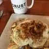 I will be as honest as I can be... I give Crust a 10 for service and presentation. The menu is actually really good, many choices, different combos (great mix), atmosphere is modern and really pretty. Here is where I am sad. The food itself wasn’t spectacular. I got the breakfast pot pie. It came beautifully presented with a triangular puff pastry, sunny side egg over a few potatoes with a gravy. In my opinion , it lacked seasoning as I added salt for flavor. The puff pastry was nothing out of this world. My partner got the egg and French toast plate, huge elongated plate with eggs, potatoes, sausage and 4 big slices of French toast. He said everything was great but the sausage was a bit chewy. I will go back and perhaps try something else. I paid $40 for 2 breakfasts and coffee incl tip... a bit much but god I tried it.
