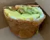 Warm welcome - lovely relaxed environment - very busy - breakfast sandwich (a croissant with bacon egg and cheese) was very tasty!