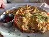 The Clam chowder soup was from the night before and cold, there was lipstick on our water glass and the fries were cold. Everything else was ok.