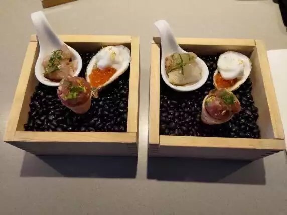 We take one Domokase and one "Trust me more" a perfect amount of sushi for two and you get to try a variety of foods. Oh yea, the price is right for a tasting menu. This place is known for that. You will get a variety in your tasting menu. The hits: Lobster, Chuturo, and salmon. If you like yuzu, you will love the shrimp apple salad. Bursting with citrus flavor, its inhaled at first bite. The Service is very fast and the atmosphere is so nice to not realize that they have spent two hours in perfect harmony. Good indeed super good! The strane thing however was not to find a review here on Tripadvisor,, because it really deserves!