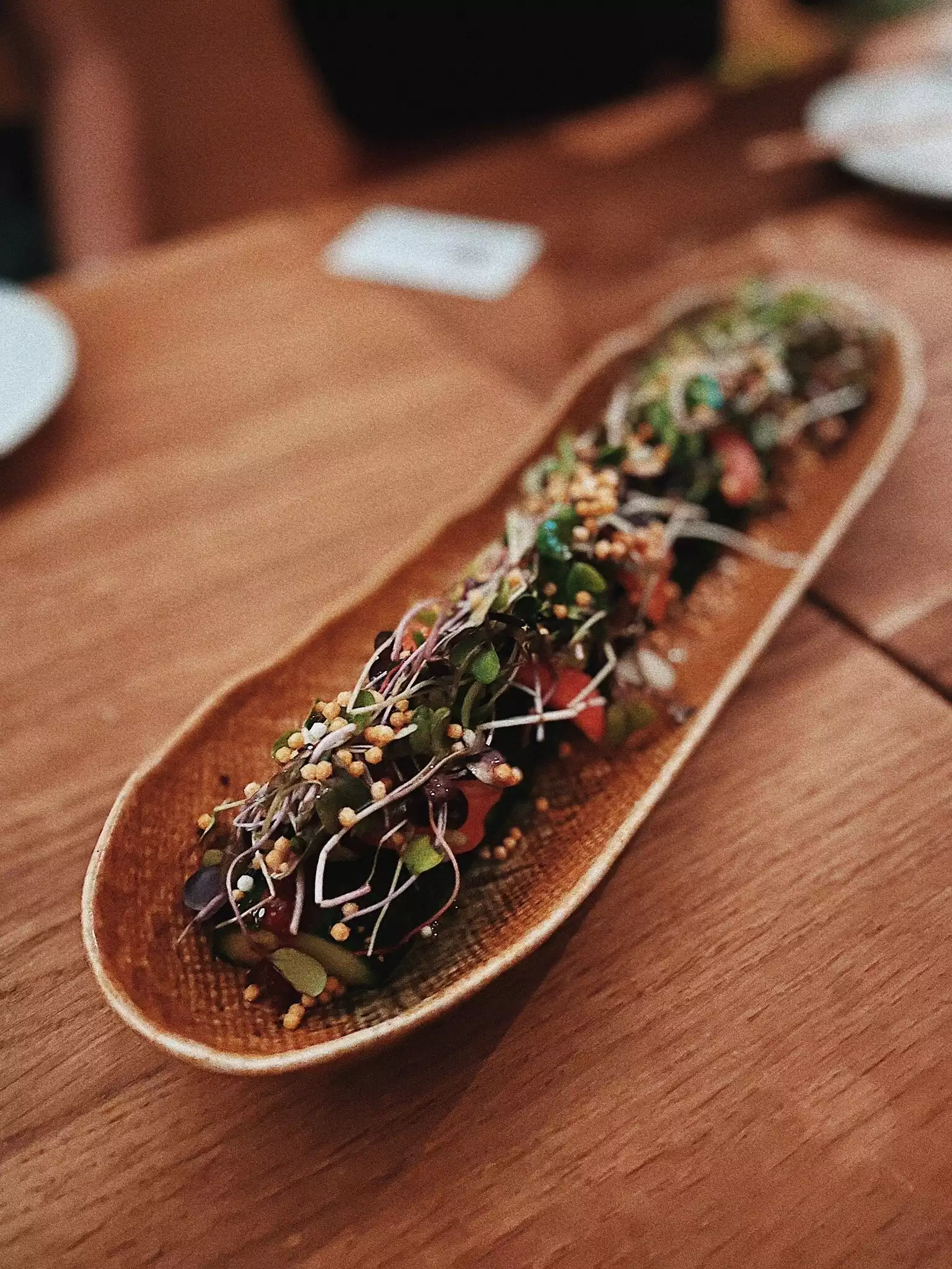 I came here with close friend who is a former Bachelorette superstar, so we were treated like royalty. The superstar was late as she is on superstar time, so I checked us in for our res and ordered a Sapporo. Whenever I hit Domodomo, I don't go too sushi heavy because I LOVE their entrees with all of my being. There is comparable (likely even better) sushi in the city but when it comes to those entrees, Domodomo is top 2 and it's not 2. PRO TIP: Even if you don't like oysters, the Oyster bar is head and shoulders the best seating/ambiance in the place, maybe my favorite in NYC as a whole. There is a large skylight looking down on an elegant minimalist interior. ELITE date setting fellas ¯_(ツ)_/¯ For food, me and the superstar shared the following: King Salmon & Fatty Tuna nigiri (Both elite), Shrimp Tempura handroll (THE MANGO WENT CRAZY!), Spicy Tuna handroll (Yum), Cauliflower (A must have), Miso Black Cod (Very good), Shrimp Dumplings (Elite), and the Garlic bacon fried rice (BANG!). The highlight was the shrimp tempura handroll, as the mango on top really did something to me. I love trying things that I think would be terrible but end up being immaculate. Everyone needs to experience that at least once. IG @jnov_ Tiktok @jnov__