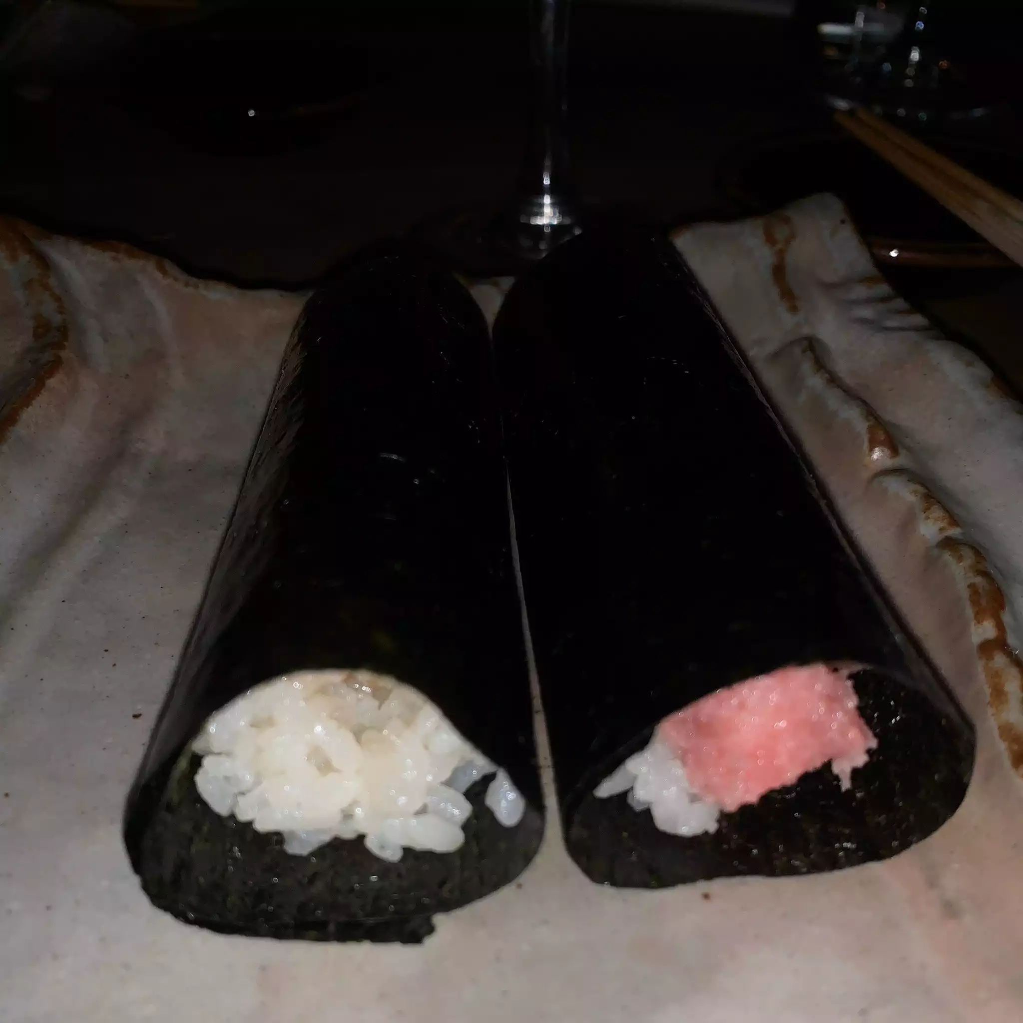 Got the Sushi & Handroll Course. Not the best chawanmushi I’ve ever had. I prefer it classic with simple flavors. The truffle jelly didn’t exactly taste like truffles, but still overpowered the egg custard. Shrimp apple salad was better than I expected. The sauce had some heat to it, which was a nice touch. After I finished, the chef asked if I was ready for sushi, which I felt was quite considerate. The rice in the nigiri was a bit salty from the chef’s all-too-liberal applications of soy sauce. However, the sea bass was an exceptional piece of fish; the flavor still shined through the soy-laden rice. The fish with picked banana was also really good (and that’s coming from someone who doesn’t really like banana). Blue crab hand roll was exceptional. Flavorful crab, warm sticky rice, crispy seaweed. The crab was really good. The bay scallop hand roll was entirely different from what I expected. I anticipated some lightly seasoned scallop, similar to what you’d get if it was nigiri. Instead, it was doused in the same Mayo as what covers spicy salmon/tuna rolls, mixed with tiny salmon roe. The lobster hand roll was good — cool, crunchy, tasty. Overall: decent food, slightly too salty, wouldn’t mind returning but also won’t be rushing back.