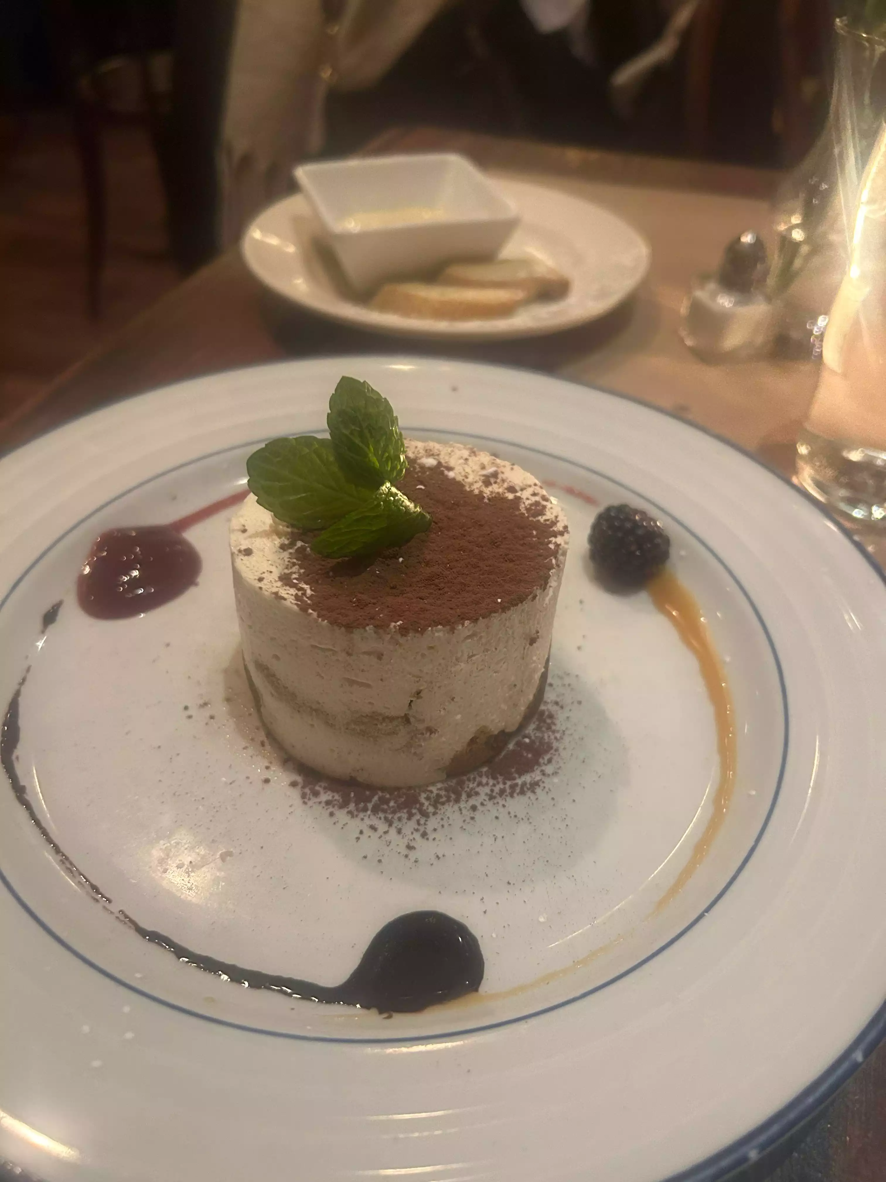 Well decorated place! Comfortable chairs, perfect service! Menu of the gods including dessert and the famous tiramisu! I would come back every day until I knew all the dishes!