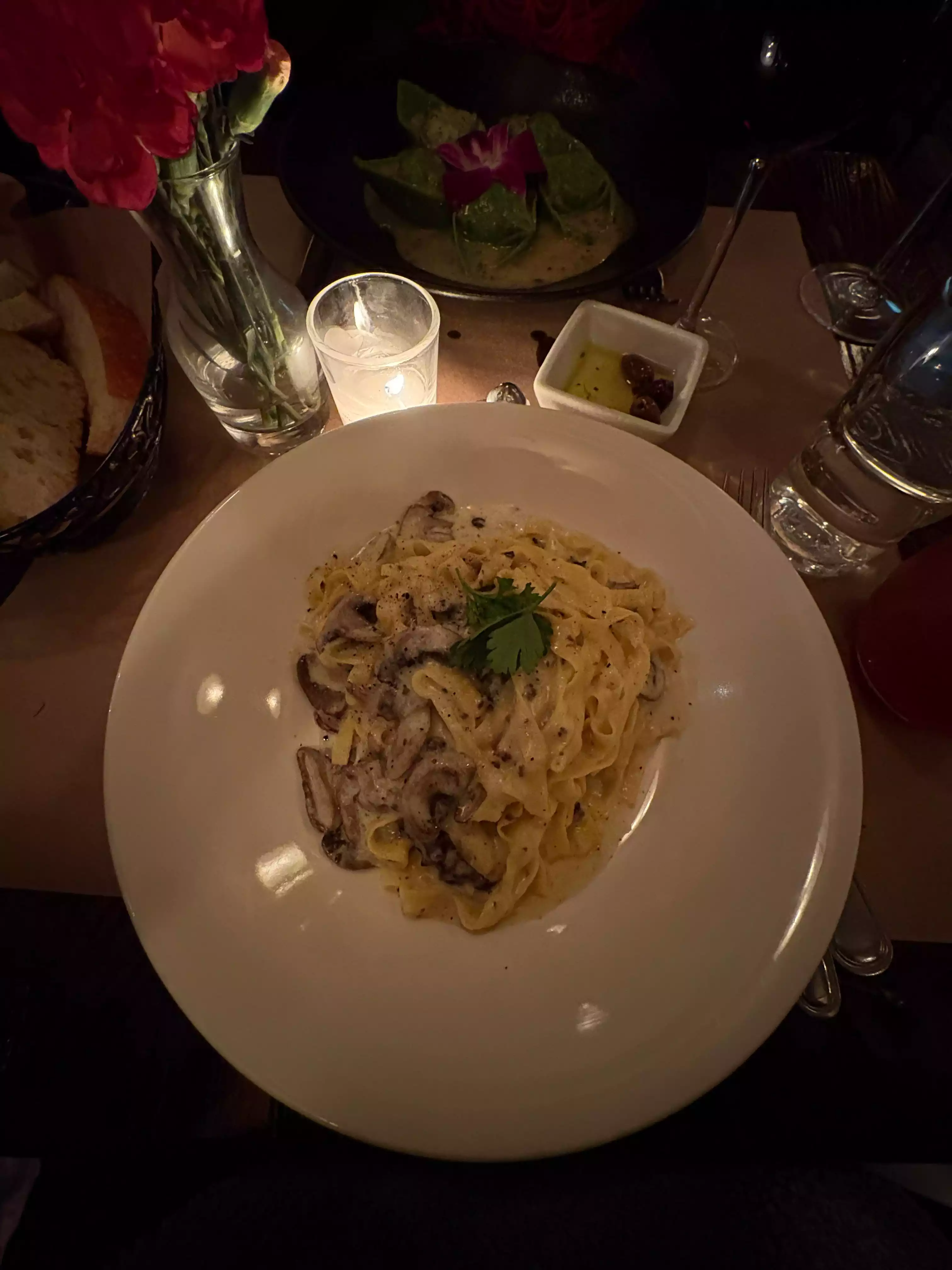 We came here for dinner and honestly the whole night felt so cozy and warm. The restaurant has that soft, candlelit vibe that instantly puts you in a good mood. Our table looked so pretty with the small flowers and the little candle burning in the middle, it just felt intimate in the best way. The food was actually amazing. The pasta was creamy and fresh, the chicken dishes were plated beautifully, and even the sides tasted like someone actually cared making them. Everything came out hot and well-seasoned. The drinks were also really good. super refreshing without being too sweet. I also want to mention our server, Isaac, because he genuinely made the experience better. He was patient, checked on us without hovering, and just felt really kind overall. You can tell when someone takes pride in their job, and he definitely did. Overall, the whole atmosphere + good food + great service made it such a nice night. I’d definitely come back.