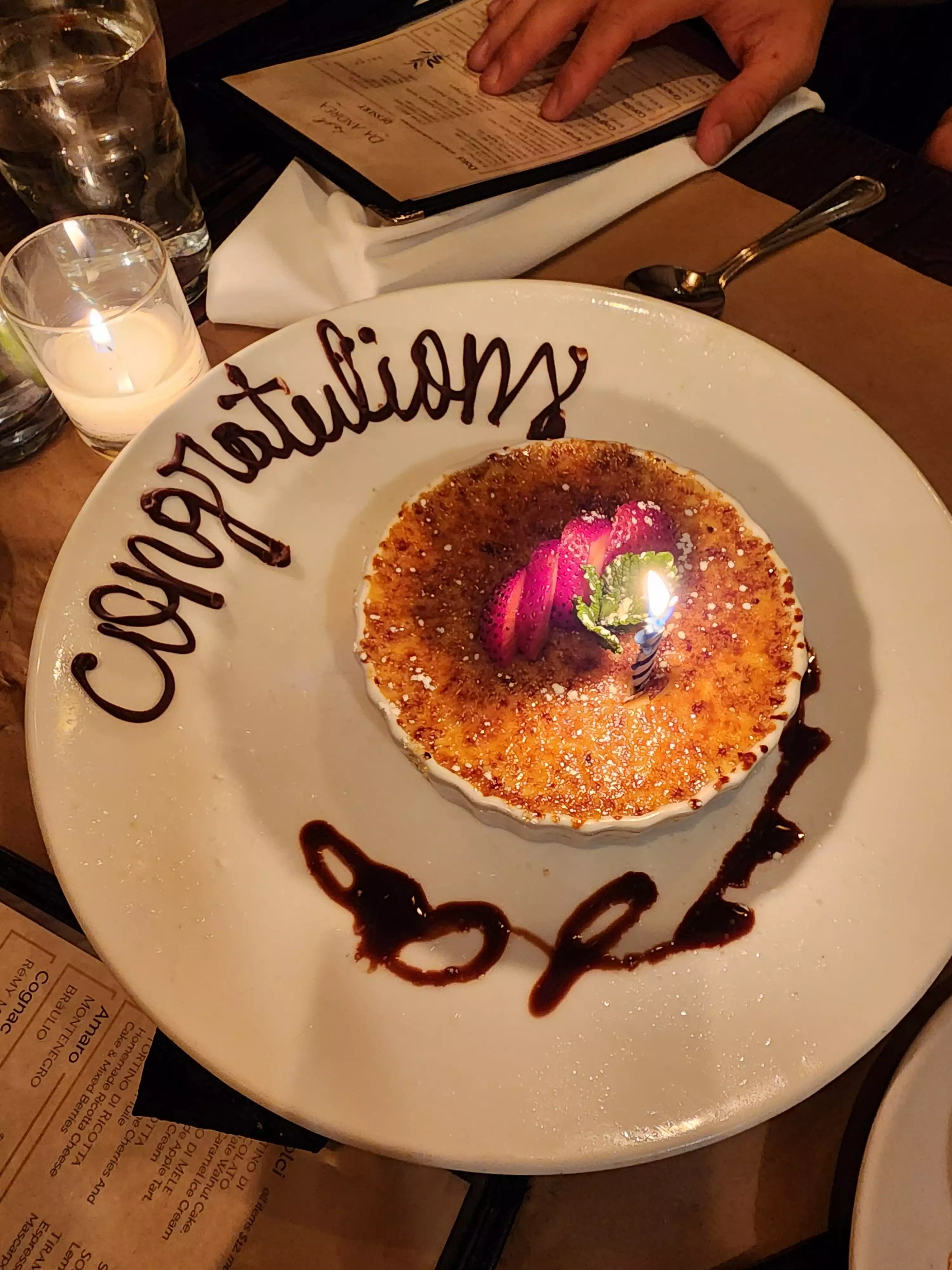Pretty good!! The service was great! We got the carbonara, which was pretty good but was a little rich, and the bolognese. We also got three crème brûlée and the chocolate walnut cake which was delicious