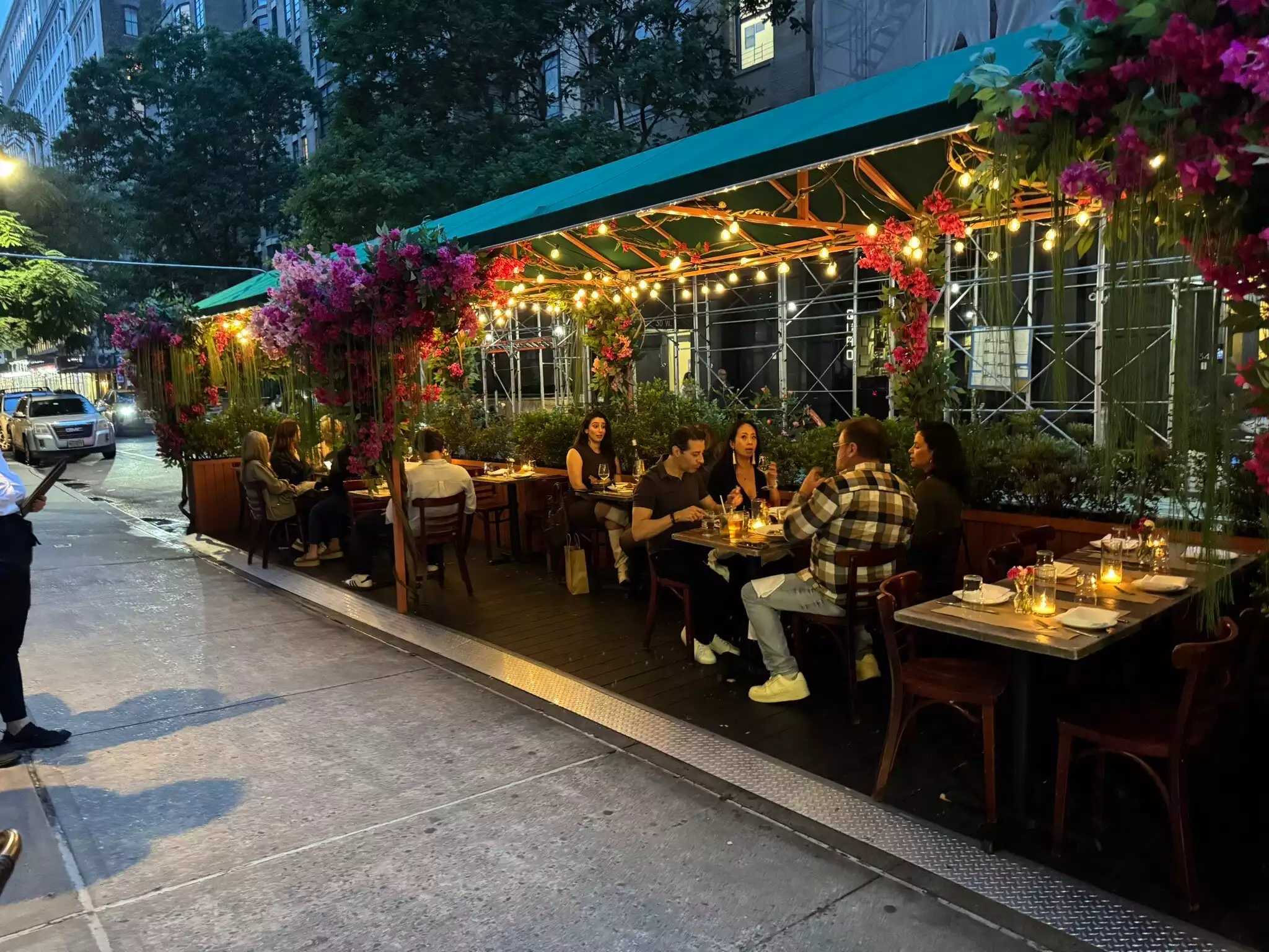 I'm giving this one a five because we experienced great food and excellent service in a gorgeous setting. That's enough for me~ First, this review is based on a Sunday brunch experience. Second, we ate in the outside heated space, which one sees all over the city now. It was beautifully decorated and, although a very cold day, we were totally comfortable. I had the lobster benedict, which was two perfectly prepared eggs on a lobster "cake" and a really good hollandaise. Others had the polenta and eggs and two different pastas, which I tasted. The truffle pasta was amazing. We were immediately brought a basket of wonderful bread when we sat down and the service was attentive throughout. There were very few people sitting in the outdoor area and more arrived as time went by, but it never felt crowded. I don't know what it's like inside. The decor is gorgeous. I also loved that our waiter was really Italian and I could speak to him in Italian. Buonissimo!