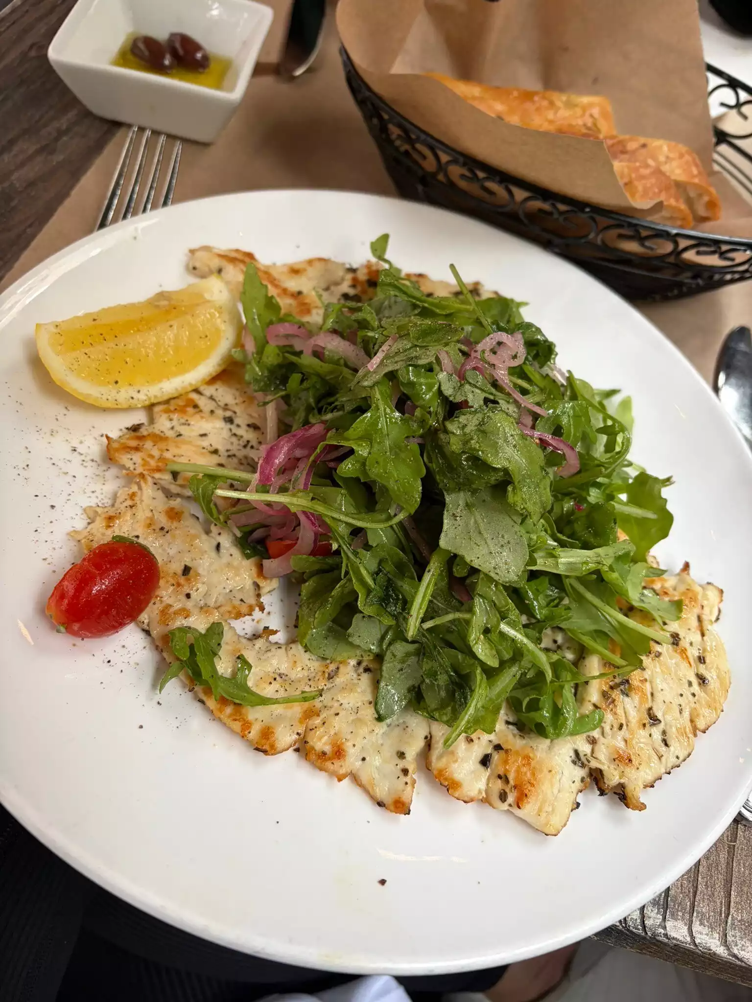 Beautiful decor outside and absolutely delicious food & wine! Our service was fantastic as well! Polina was our server. Super friendly along with everyone else that came to our table! Brussel sprout salad, chicken and tuna entrees! Dessert, red wine! We couldn’t ask for anything more!