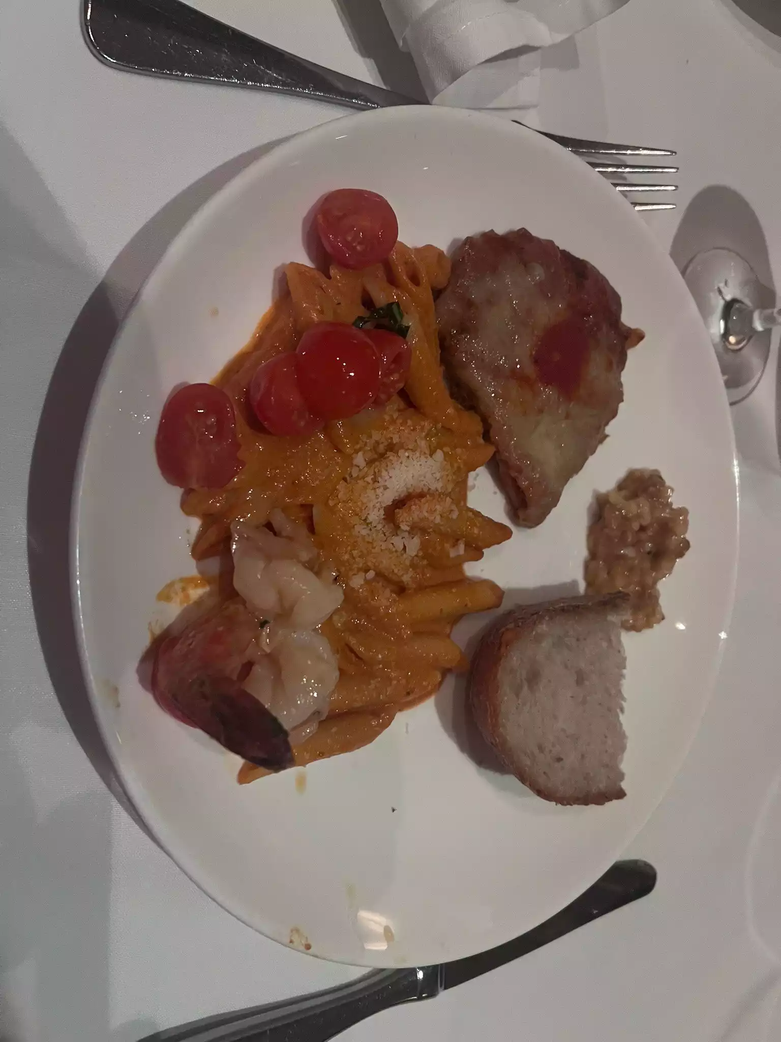 Service was very attentive & knowledgeable. My friend & I were very surprised that pasta didn’t come with our orders of chicken parm & eggplant parm…so beware of that.