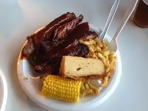 Ribs WAS DRY, Unseasoned and dry even thought it tasted boiled .Mac and cheese was mixed with vinegar and wings was uncooked the slice beard was stale this is the worst place all this was 25$ they should be ashamed of there self for selling that garbage I shared this with my co worker and she just throw it away