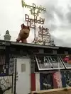 This place is worth a visit for the signage and the painting on the walls and ceiling. It looks like the essence of barbecue joint. Unfortunately, the barbecue left much to be desired. The ribs had been cooked too fast; they were chewy (that's OK), but had little smoke and a good deal of unrendered fat. The pulled pork was dry and needed the (pretty good) sauce to be edible. The cole slaw and cornbread were good, but that's not what you go to a barbecue place for. The service was *extremely* slow, but the menu warns you about that. The waiter was cheerful and agreeable.