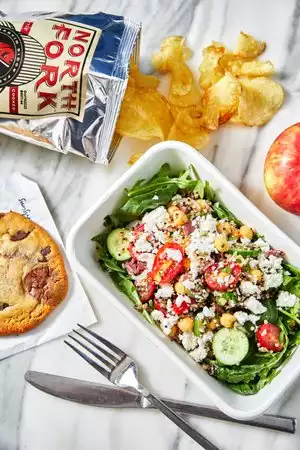 This is my new favorite healthy weeknight dinner delivery spot. It’s known for breakfast/day/pastry, but I actually love them for dinner bc it’s hard to find a high quality everyday salad delivery spot like this. The kale salad and wheat berry salad with salmon on top is SO GOOD. Love the brussel sprouts too. It’s awesome they have family style meals where you can order a salad for 4 and then add protein of choice on top (for me salmon). Every ingredient is high quality - LOVE.