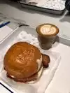 My favorite breakfast in NYC. Bacon & egg sandwich with a hot sauce. Delicious. Great Concept. Nice coffee. Doughnuts wow.