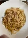 Huge portions. I was in the mood for carbonara And they made it for me even though it wasn’t on the menu. Very good. Risotto was chicken with veggies in saffron. Excellent! Great service. We got in here just before it got crowded. Every table was filled within twenty minutes of arriving. We got here just before noon.
