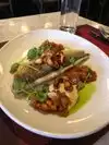 Clubby, genial atmosphere (upstairs), attentive service. Shared the gem and beet salad which was terrific and substantial. The scallop/octopus entree was tasty but for the price one would expect more than 3 average-sized scallops and a small piece of octopus, with a few stalks of broccoli. Guess this is not the entree to order if you want to leave satisfied.