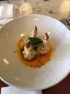 Downstairs is Happy Hour with $2 oysters that I’ll come back another time to try. We reserved upstairs fine dining and had a pleasant dining experience. It started off with reasonable noise level and got quite noisy as the evening went on, but I found the atmosphere quite festive to have everyone chatting away enjoying themselves. Came here for the first time sampling their Restaurant Week, recommended by a friend who is a regular here. As recommended, I tried that famous Lobster Dumpling and it was savory while maintaining its juiciness, all wrapped in a Chinese dumpling like style with an unusual twist of protruding Lobster legs sticking out teasing us to consume it like a straw. As the top of wrap was fairly thick and not edible—the part where they did the twist, I skipped that part. But it lived up to its reputation; it was delightful appetizer. My friend had the Bison Short Rib and loved every part of it. I sampled the grits and it was done just right. My original chicken entree, which is generally spot on—according to my friend, turned out quite dry. Understanding that chicken breast is suppose to be slightly less moist than dark meat, but overcooked kind of dry is not acceptable when it’s expensive and served at a reputable restaurant. The restaurant was kind enough to switch my dish to the Bronzino and that was done with the right amount of grilling, leaving the fish succulent and tasty, enhancing the fish flavor to its fullest. I did however, choose to leave off the skin, finding it too chewy without the right amount of crisp needed to easily please the palette. It was served with artichoke heart. Other than drinks, we ended the meal with the flaming Alaska Bake. What a nice way to end with a “crackling performance” where it flames up when lit, of course because of the liquor served above the pretty displayed dessert. Overall, will definitely come back here even if it’s not Restaurant Week. But I’ll probably skip the chicken entree and try their scallop with squid when another patron seated next to our table raved about their entree, and recommended it to us.