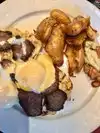 The meal starts off with these excellent corn muffins, that are miniature and do not look like your typical muffin. Such an exciting start to the meal. I had a special - which was filet, cooked perfectly with very delicious french fries. For dessert I had an excellent pie/tart with cinnamon ice cream. That was truly excellent. The service was very attentive. We were there for lunch at 1:30 and it was crowded and tended towards the noisy. By 2:00 it was much quieter. The downstairs bar is very inviting. I would definitely go sit at the bar and eat, if I had the occasion to do so.