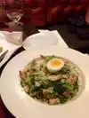 On my trip to NY we visited this restaurant tonight, my party had been before all raving about it! The food was good some said the main courses could have been hotter I d say just not picked up from the kitchen.....to say the least the service was deplorable, I ordered first they had no chicken left so I asked could I just have an appetitser the clothesline bacon and the dressed fries with bacon etc, no problem, well food took ages to come out, they had ordered 2 bacon for starter one came out, another waiter came and apologised they were cooking more it was a busy night, the waiter didn’t open the 2nd bottle of wine at the table or ask any of the party to taste a total no no, one of the ladies asked for water 3 times, starters were lovely when they arrived, reservation for 8, orders taken at 9 main course on table at almost 10 minus my fries he brought ordinary ones, just wasn’t listening. I was getting a train at 11 so missed dessert which looked amazing arriving at other tables....the main man was even in the restaurant.....all in all food excellent service shocking!