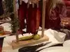 Many bacon dishes, like bacon on a clothesline. Creative presentations, but overpriced and very rich