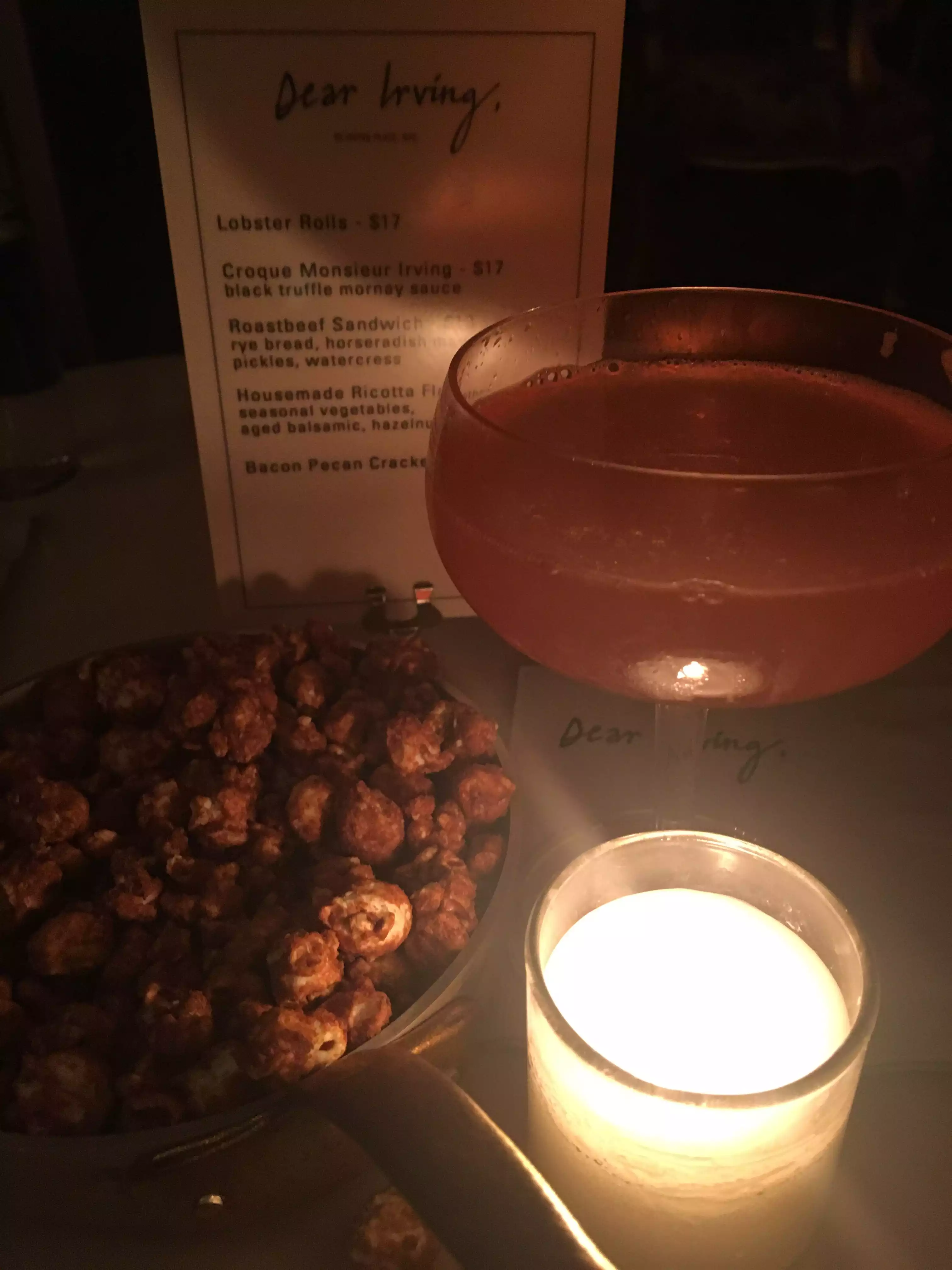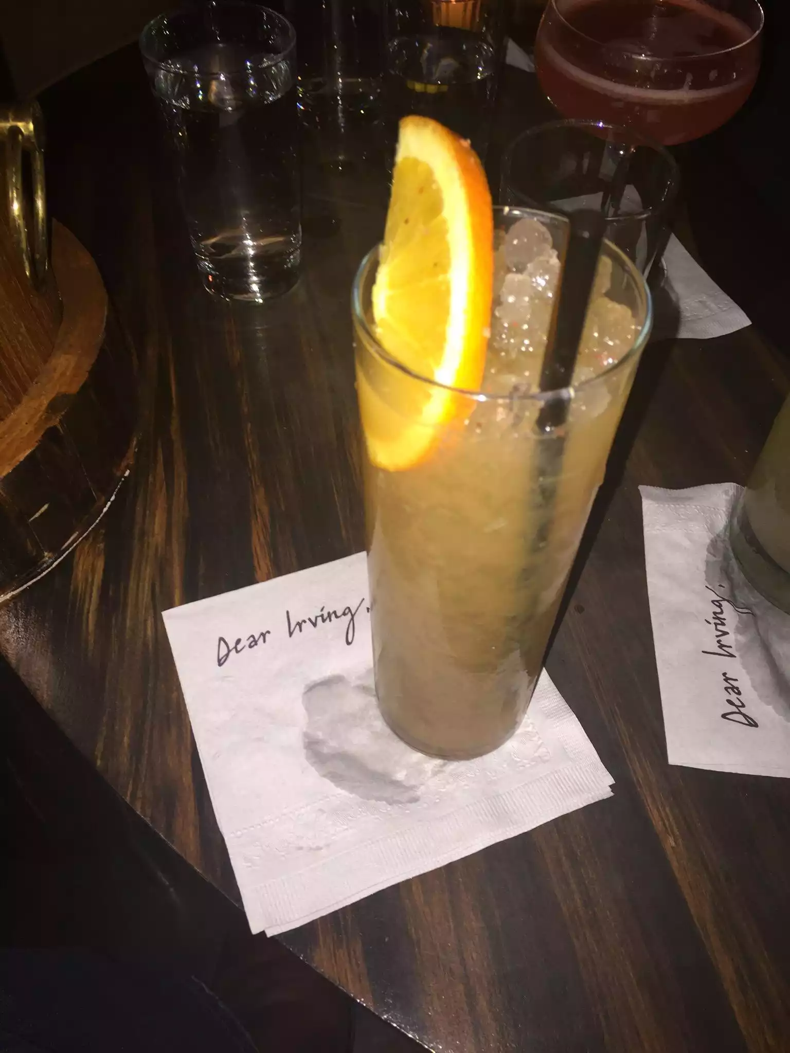 Dear Irving had a bit of a Hollywood feel where the music is not too loud that you can't hear the people you are with, but loud enough that you can't really hear the people around you. It also had that crowded but not too crowded feel to it. I had a couple of old fashioneds, and thought they were pretty good. I would definitely go back. Seems like a very good place for a date or smaller intimate group. I would definitely make a reservation even if you are just having drinks at the bar.