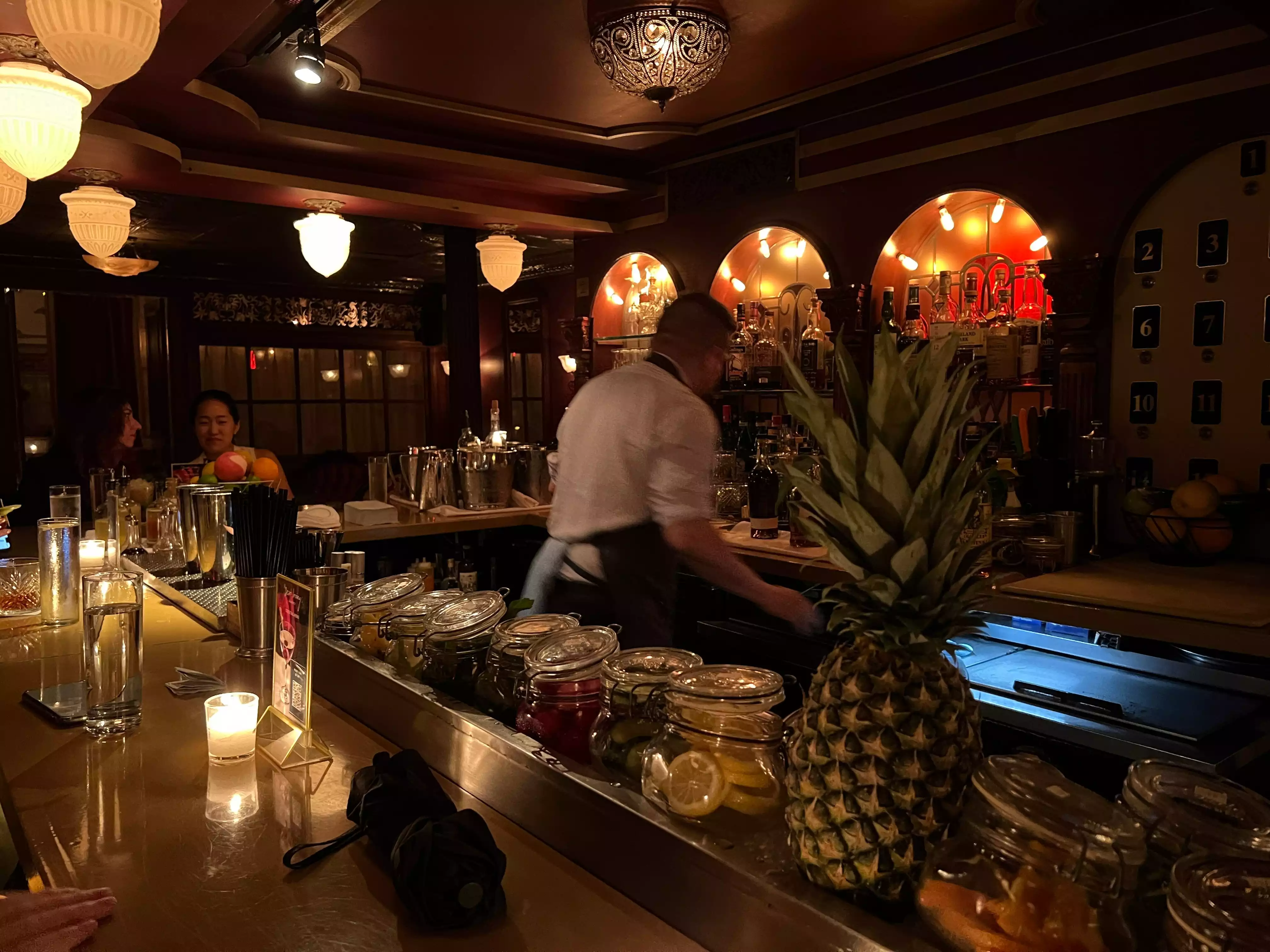 Themed rooms and detailed décor and a whimsical cocktail menu, a place for fancy cocktails.Great for dates or small groups of friends. I