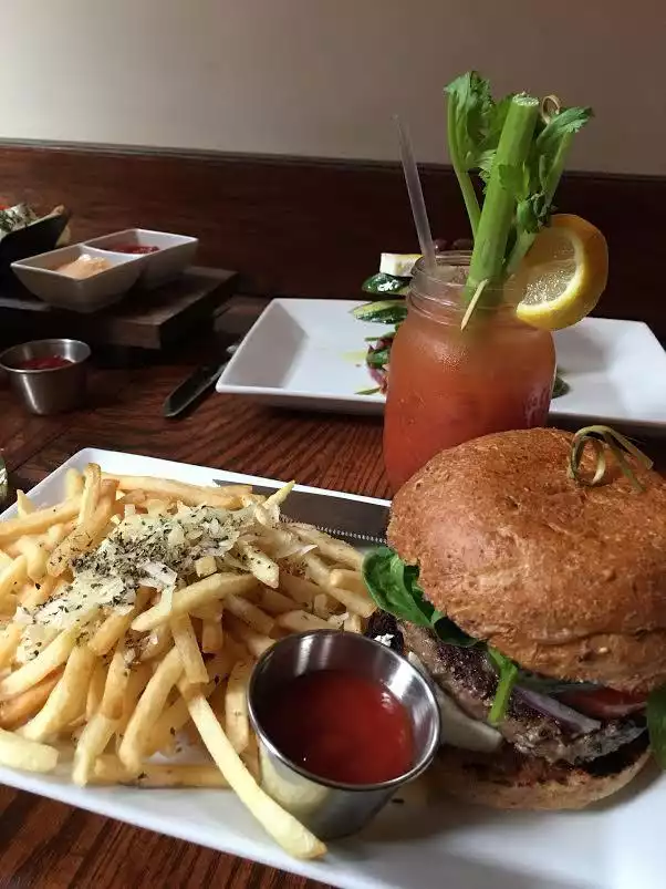 I've gone here a couple of times after work for happy hour. Tasteful but not strong drinks. Fish tacos and burgers are really tasty. Beautiful presentation and tasty. Also I remember the meat being juicy and not dry and that's a problem. Their fries could have more seasoning. Overall great place.
