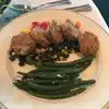 Everything we ate was yummy! My husband loves the ribs. They were accompanied by a huge amount of cooked spinach which he removed from the plate since he can’t stand the smell of it. I enjoyed his spinach though. Our waiter was working with a large group so there were a few times when we needed him but he was busy. He did eventually get to us. He was very kind and so was the rest of the staff. We ate inside since we were there for dinner and it was chilly outside but there are outside tables. The atmosphere was good and the dessert menu was huge. I had a large hot fudge sundae and my husband had the tiramisu-both were good. We definitely ate plenty of food that night!