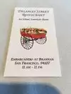 For a family reunion, we had Sunday brunch in Delancey Street Restaurant's Southwest Room. The private dining brunch menu we chose included five entree choices: cheese blintzes, french toast, smoked trout platter, garden scramble, and Italian omelet. After our salad starter, we were served our entrees. I had the cheese blintzes - three! - which came with sour cream and homemade jam, and they were delicious and filling. Even so, it was difficult to keep my eyes off of my sister's french toast: two thick slices of homemade challah deep fried in clarified butter and served with maple syrup, All of the entrees were generously sized. The set included a glass of champagne, mimosa, or freshly squeezed orange juice, as well as coffee or tea. Sheila, who had handled our reservation, was a warm and welcoming presence who kept the food and drink coming. We enjoyed the delicious food and the relaxing atmosphere. We look forward to returning to Delancey Street Restaurant on future visits to San Francisco.